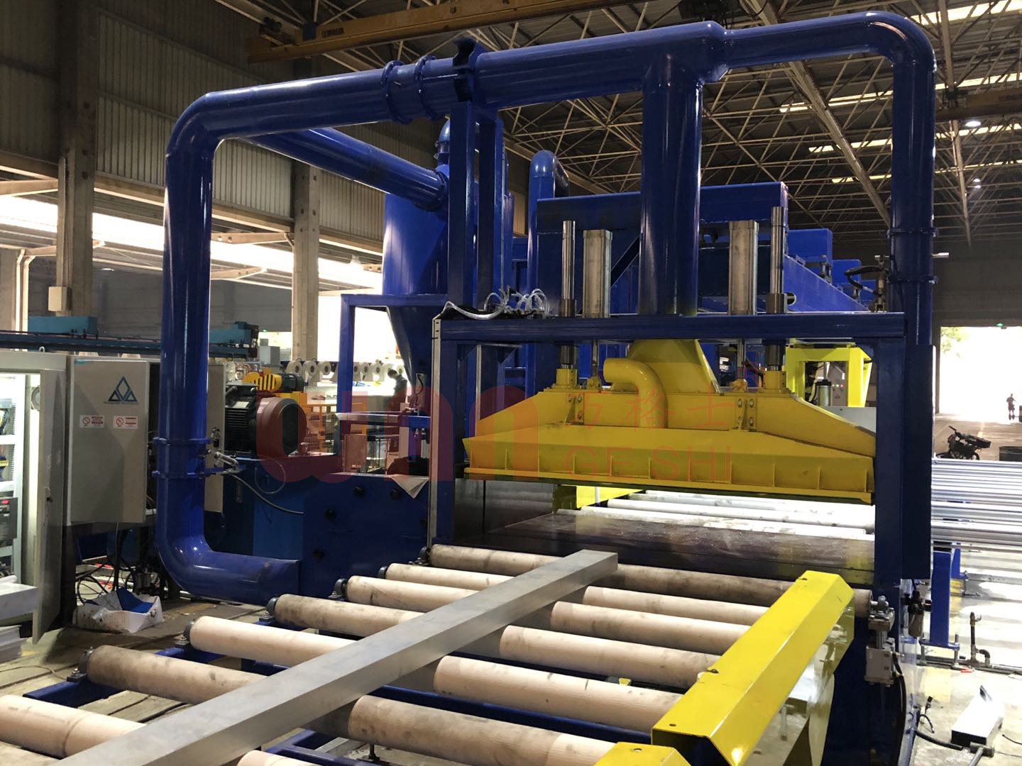 冷床是鋁擠壓生產(chǎn)線上的關(guān)鍵過渡設(shè)備,位于擠壓出口與時效爐之間。其主要作用是承接并輸送高溫型材,使其在冷卻,同時兼具定尺鋸切、矯直和儲料功能,是保障型材平直度和最終產(chǎn)品質(zhì)量的重要環(huán)節(jié)。