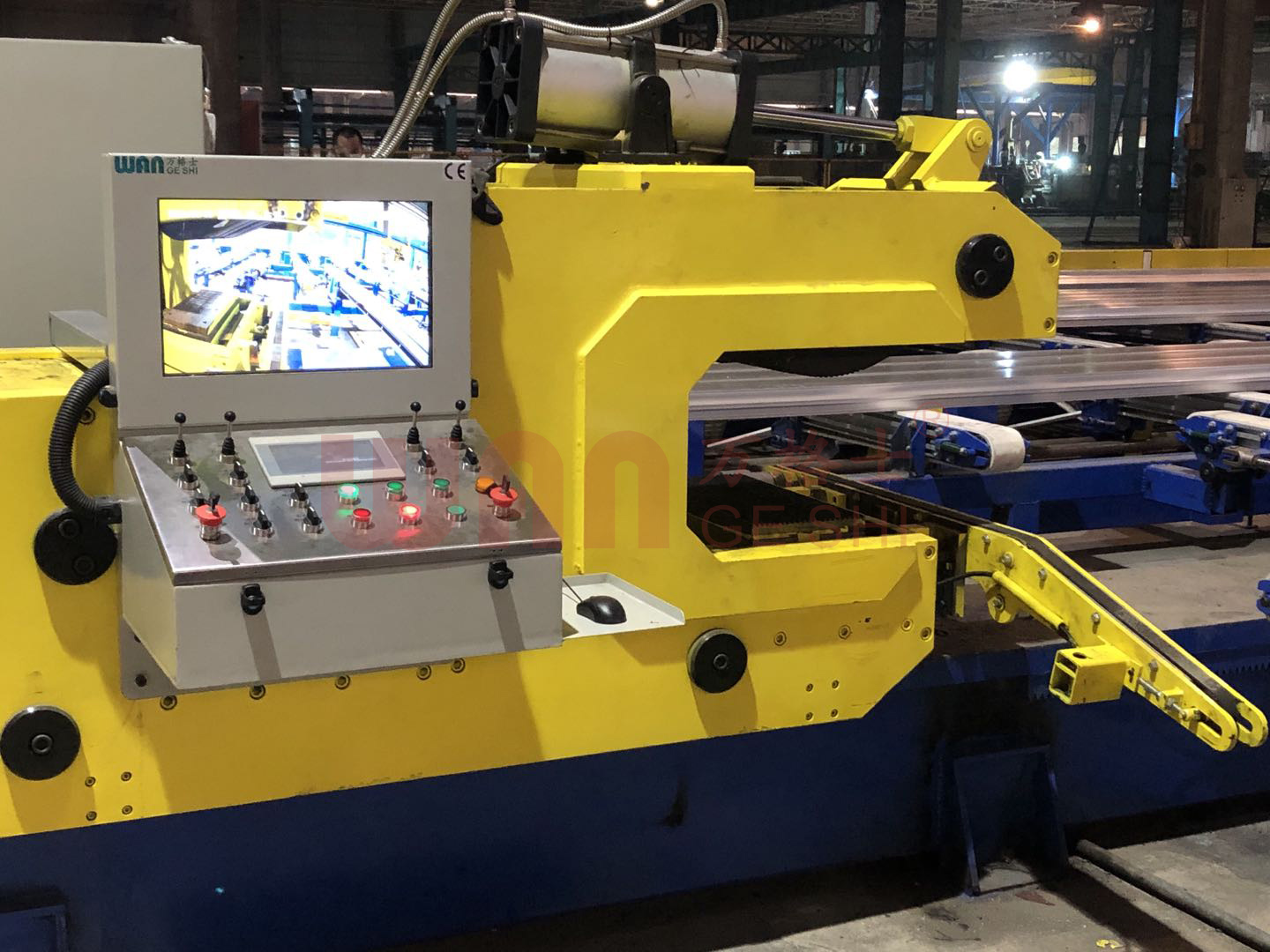滑出臺、取料臺、冷卻臺、拉直機過橋、拉直機、冷卻臺、鋸切臺成品鋸、定尺臺及定尺裝置等,并設(shè)有獨立的液壓、電氣控制裝置。